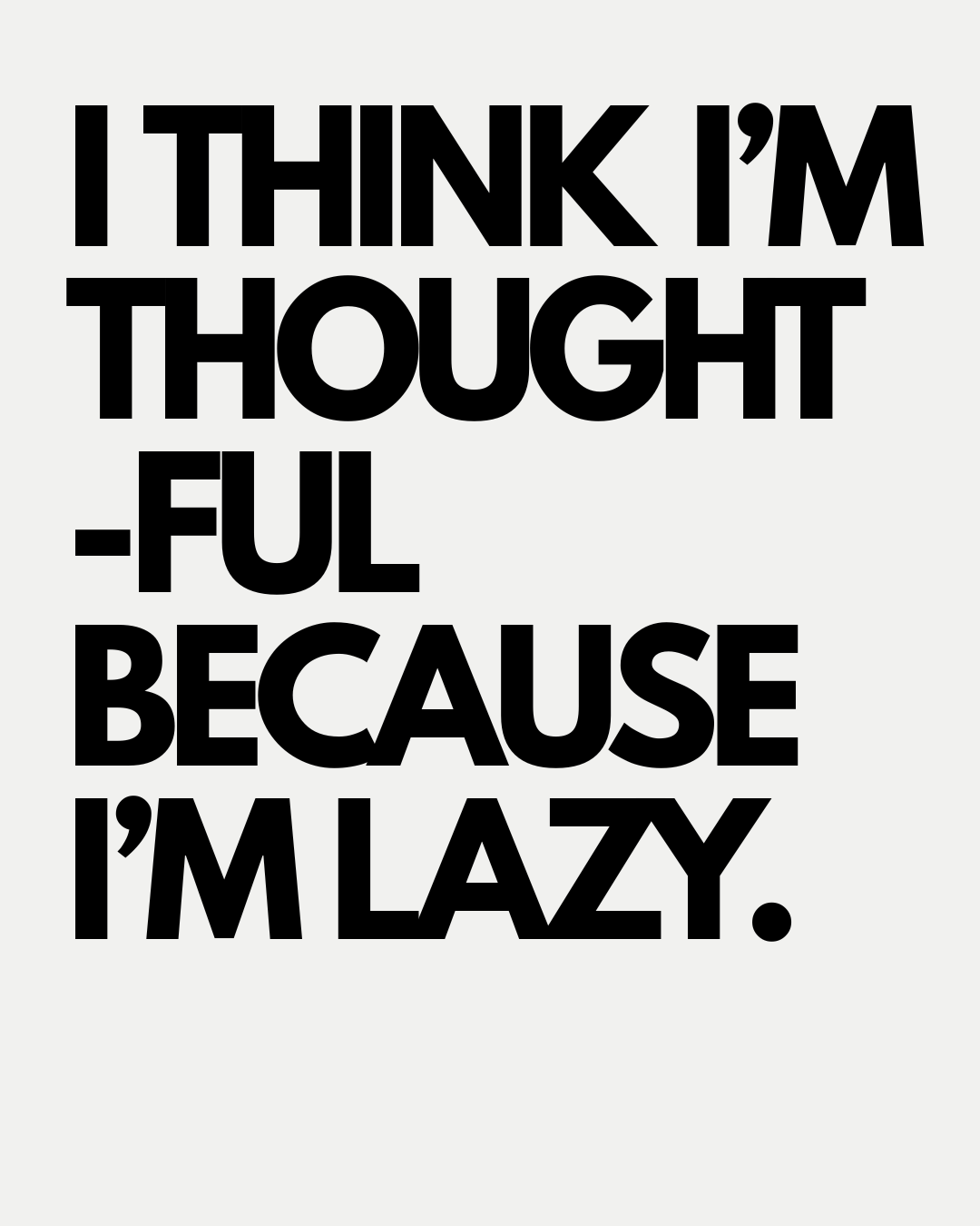 I don’t think I’m thoughtful in the way an active thinker is, like a philosopher. I think I’m more like a drifter. Maybe I should get get up and do something, but I kind of want to think right now.